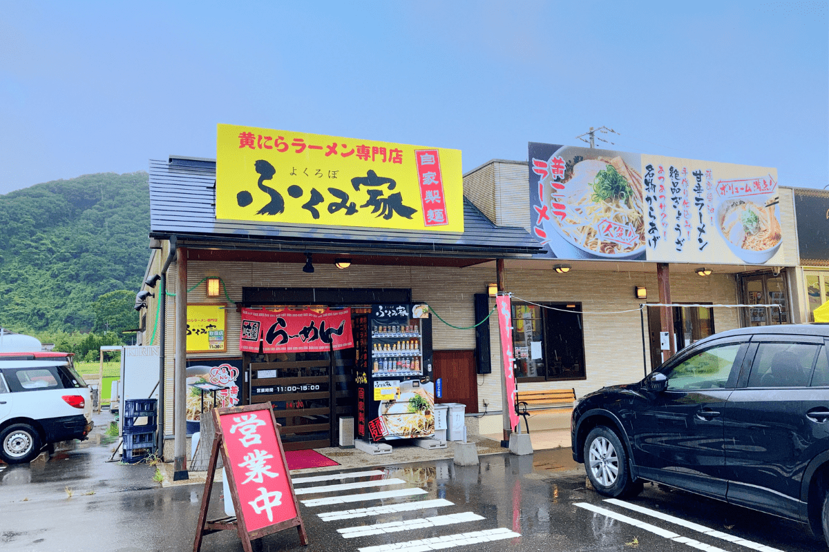 岡山県の特産品でもある「黄ニラ」を使ったラーメン店「よくろぼ ふくみ家」。みつの里の一角、以前はセルフうどん屋さんだった所にあります。昼時には多くのお客さんでにぎわっており、黄ニラを食べたことがなく、ラーメン大好きな筆者も食い気味で入店いたしました。