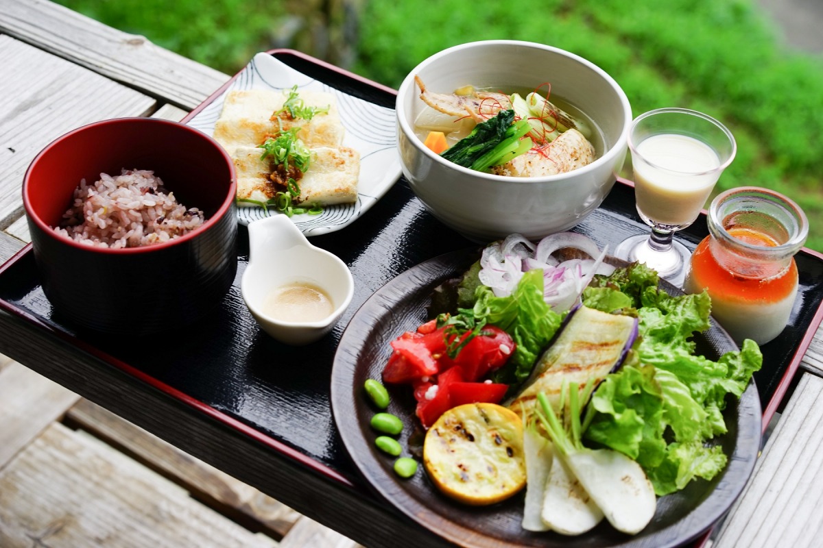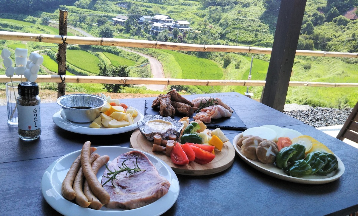 久米南町の棚田を見渡す爽快テラスでカラダが喜ぶ料理と田舎時間を