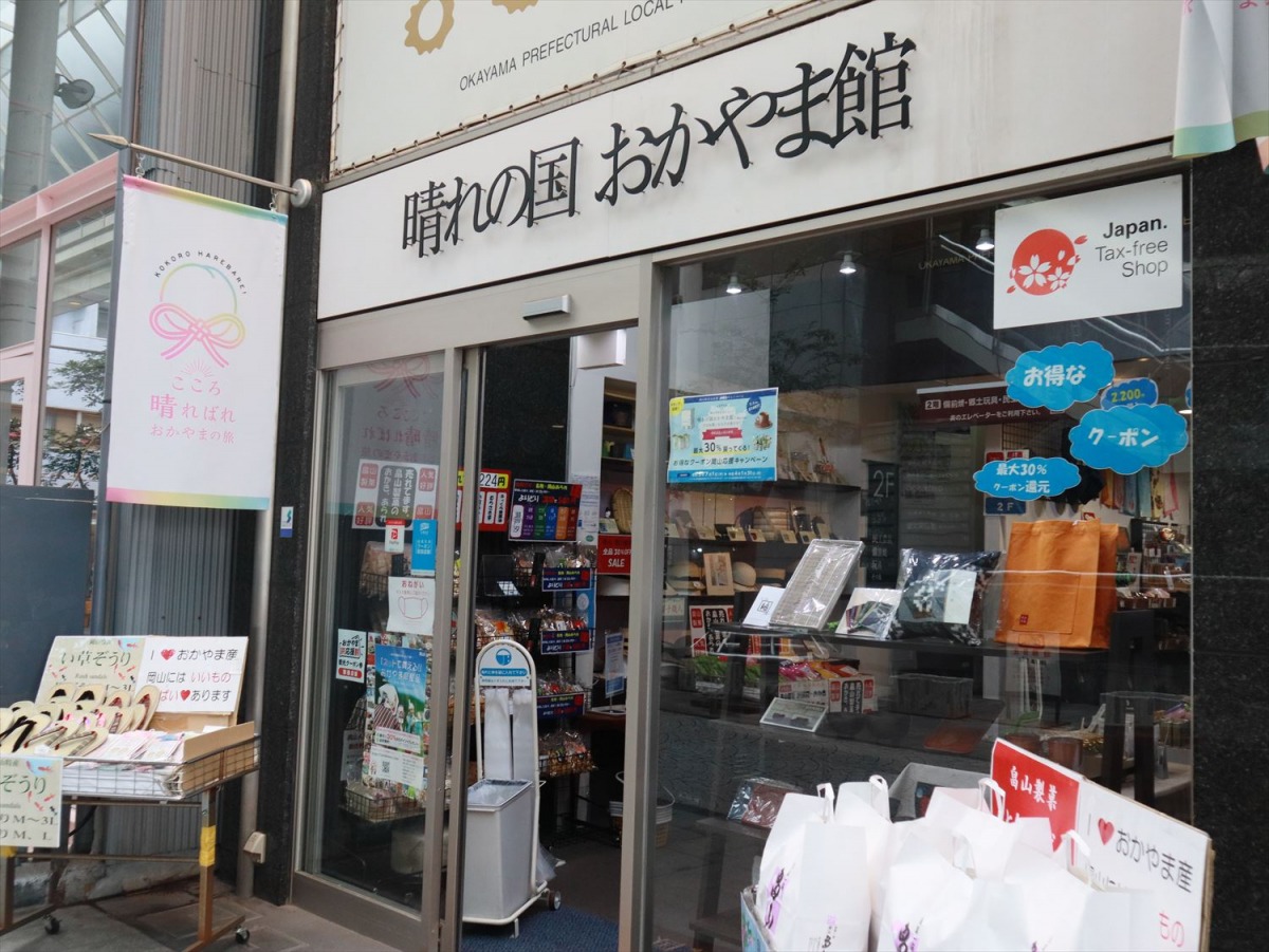 岡山県の特産品やお土産を取り扱っているお店。食べ物だけでなく、備前焼などの工芸品も扱っています。岡山駅から東山行きの路面電車に乗り、「城下」で下車し、表町商店街に入るとすぐ。表町商店街の中にあり、向いには岡山シンフォニーホールや本屋の丸善があります。