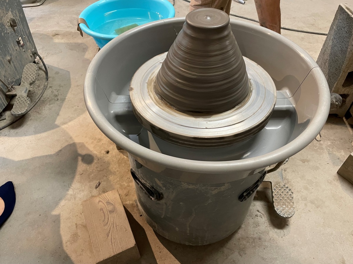 電動ろくろは講師の方の見本を見ていると簡単そうに見えますが、いざやってみると難しい!