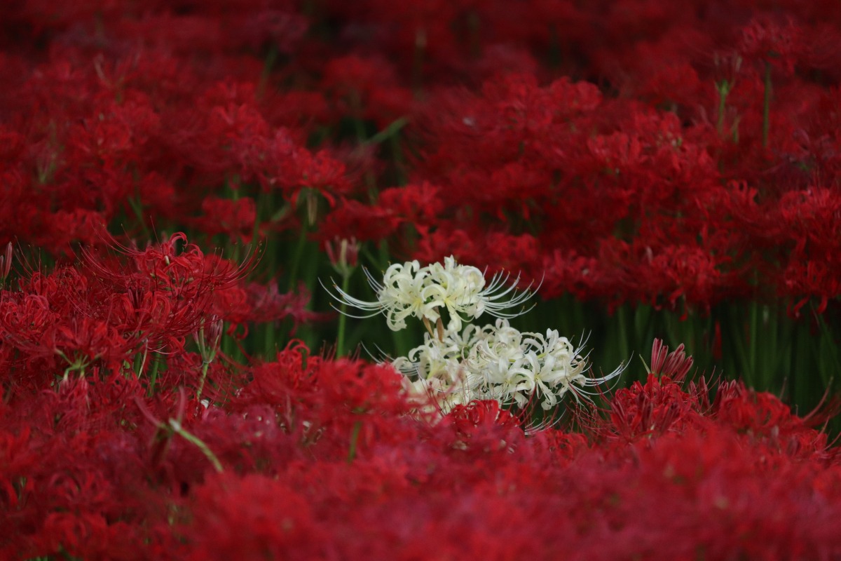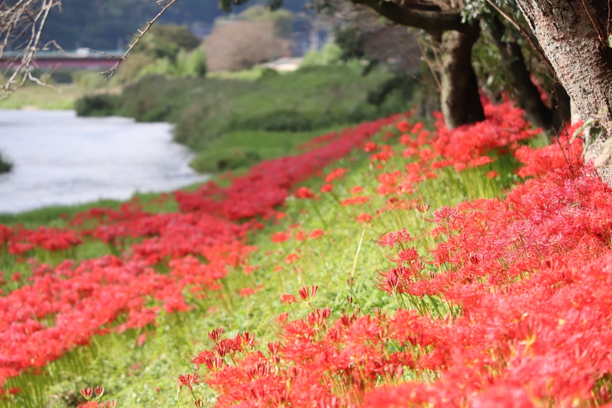彼岸花は地域に関係なく、全国一斉に咲くお花で、必ずお彼岸の時期に咲く不思議なお花です。「川東公園」の彼岸花は、自然群生だそうで、近くを流れる川と共に、古き良き日本の原風景です。途中の吉備中央町の山間の田んぼの畔にもたくさん咲いていました。(2021年9月20日撮影)