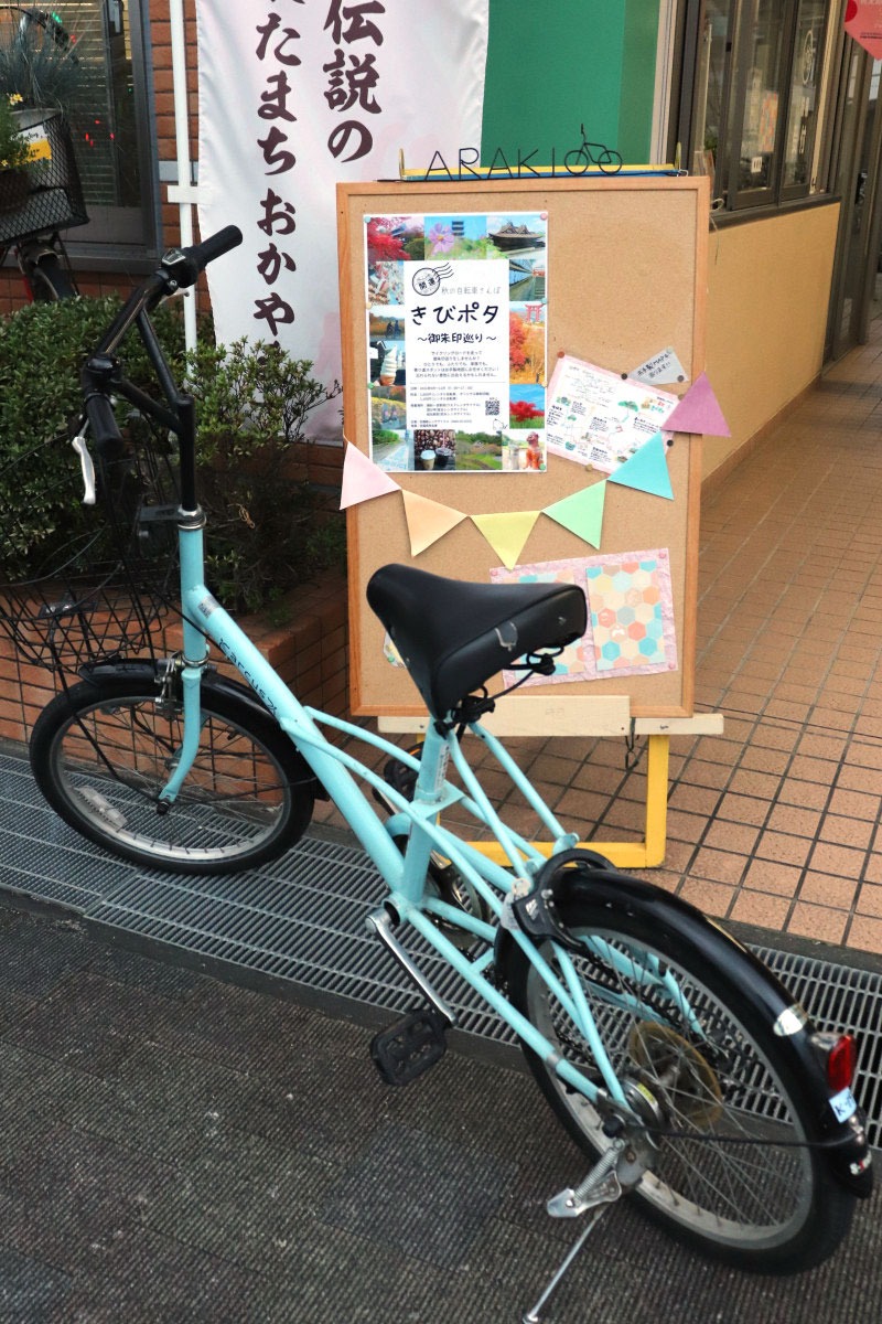 「きびポタ~吉備路を自転車でお散歩~」をおすすめしている、新しい感覚のおしゃれな吉備路レンタサイクル荒木さんに行きました。駐車場を借りることができるので、車で行って自転車を気軽に借りることができます。(駐車場は、2台ありますが、当日お越し頂いた際、空きがあればご案内可能です。空きがなければ、近隣の有料駐車場をご案内しています)JR総社駅の隣にあるので、電車での来店もアクセス抜群です。