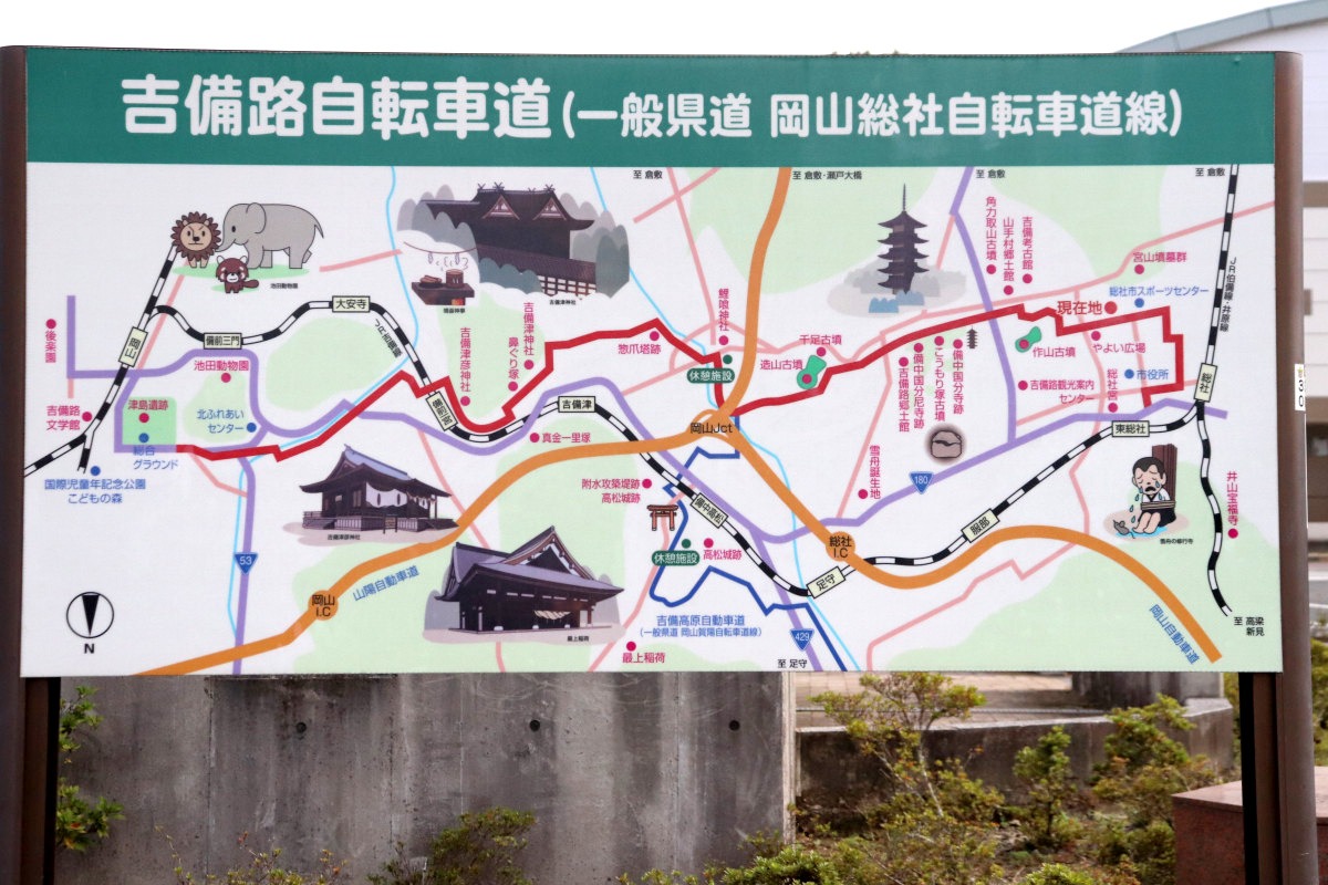 不安な気持ちがほぐれた瞬間でした。道に迷ったときは、東に向かって進んでいけば、備中国分寺が見えて、吉備路自転車道に戻れます。