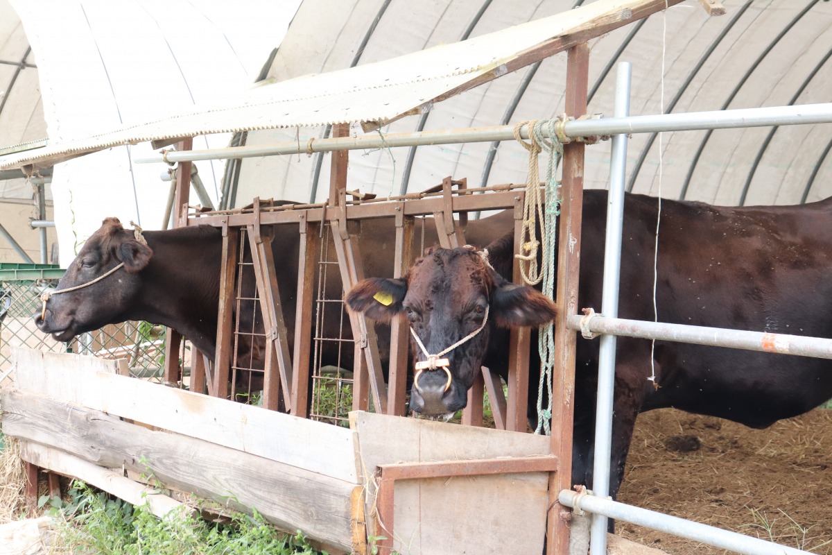 道に迷ったような気がするけれど、誰もいません。案内看板を探していて、ぽつんと牛2頭と遭遇!!笑。