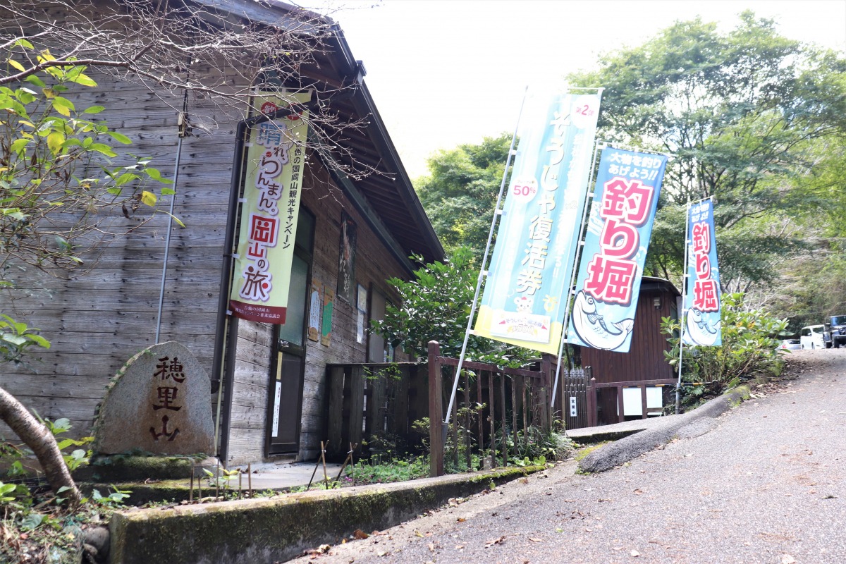 総社市市街地からほど近い、自然豊かな釣り堀「穂里山」。幹線道路から少し山を登ると看板があり、それを頼りに登って行くと釣り堀の登り旗が見えてきます。車を降りると、子供達の楽しそうな「釣れた~!!」という声。引き寄せられるように、カメラ片手におじゃましてきました。