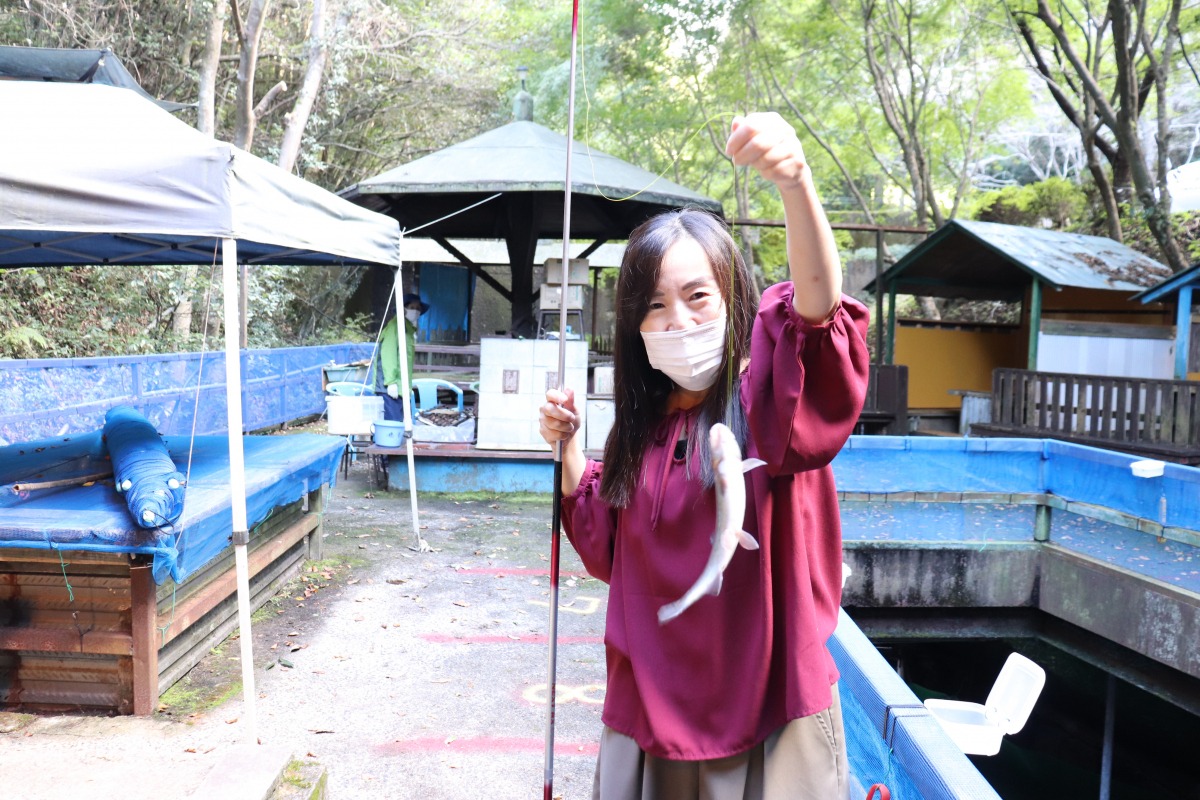 外で自然を楽しむ、いい季節になってきました。川の水温も下がり、川魚の脂も次第にのってきて美味しい季節に入ります。総社市街地から近い、総社市下倉にある釣り堀「穂里山」に行ってきました。