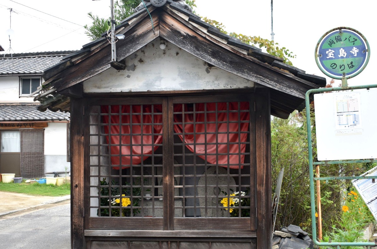 小さな祠のすぐ横に、ロマンあふれる名前のバス停が!源平合戦の時に那須与一が射った矢(宝)が、流れ着いた?等の伝説が多く残る地域なんだとか。近くには、矢の幹「箆(へら)」の文字が入った箆取公園。同じく、矢の幹という意味を持つ「矢柄」という地名など。ナゾ解き気分で、めぐってみましょう。