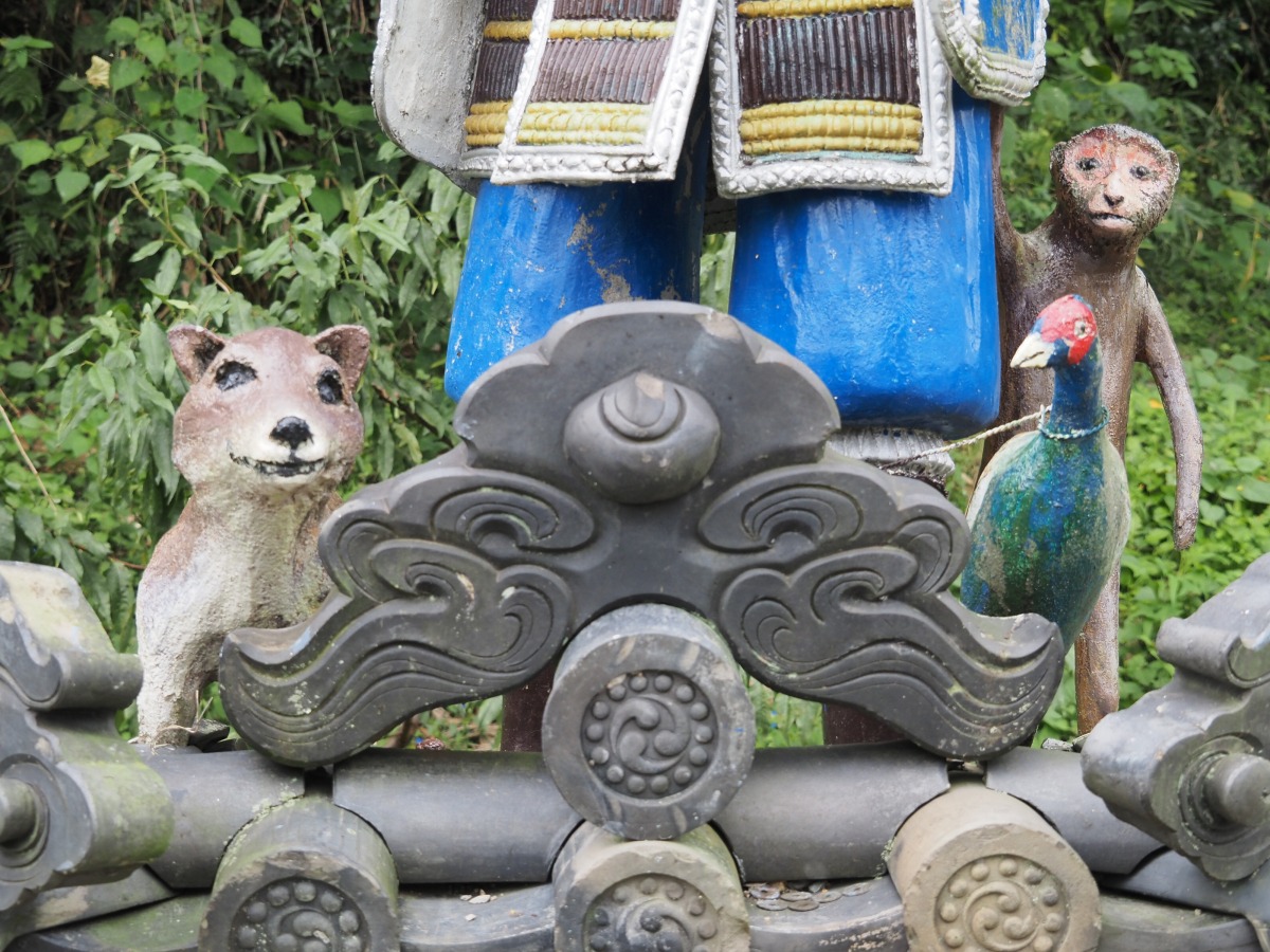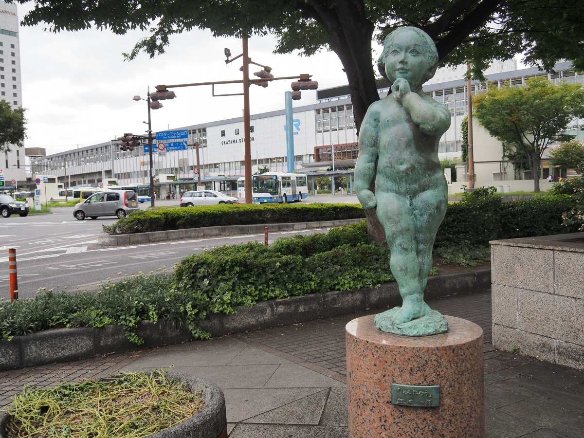 駅をバックに男の子の像があり、タイトルは「ももたろう」。生まれて間もない桃太郎の姿なのでしょうか、素朴ですね。