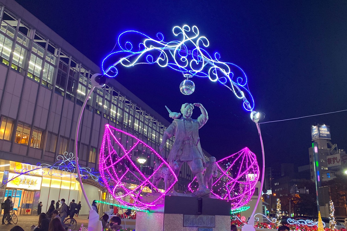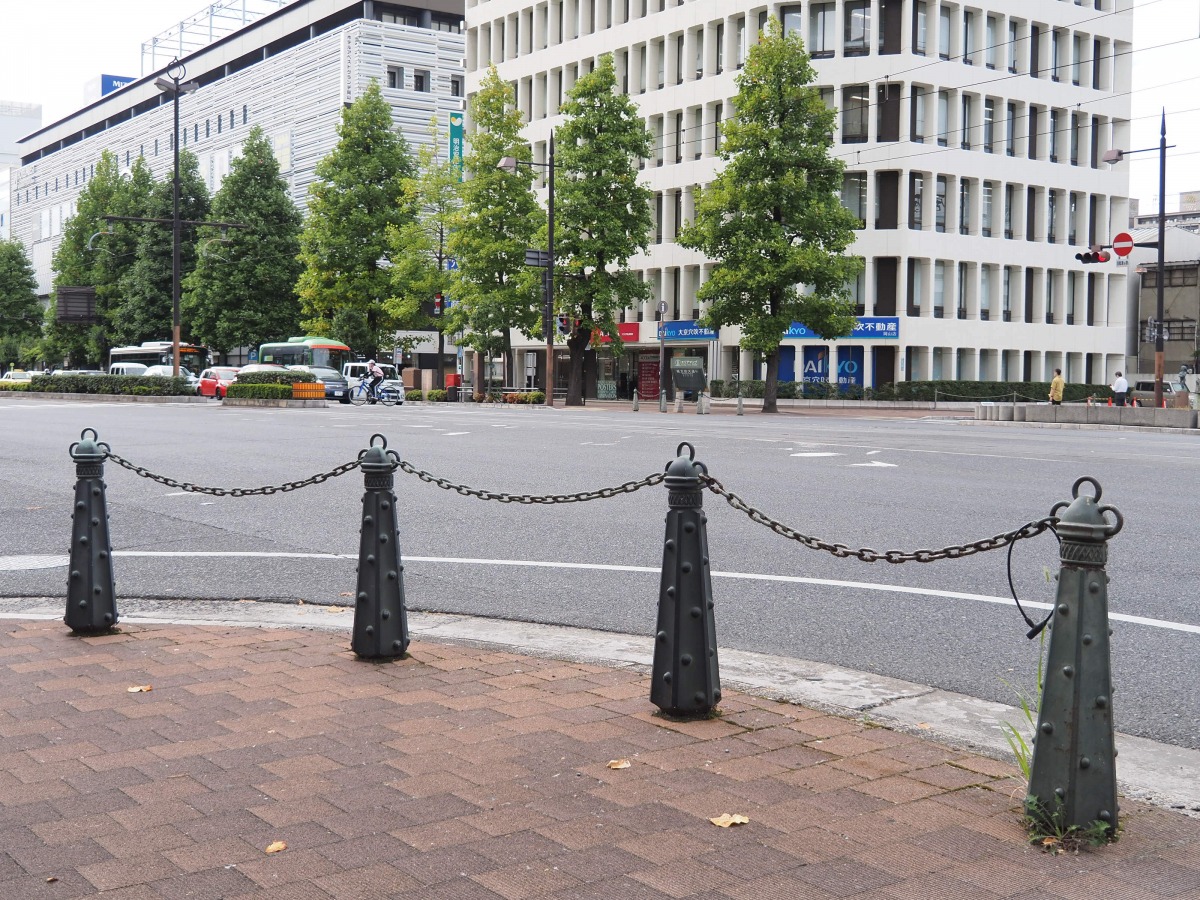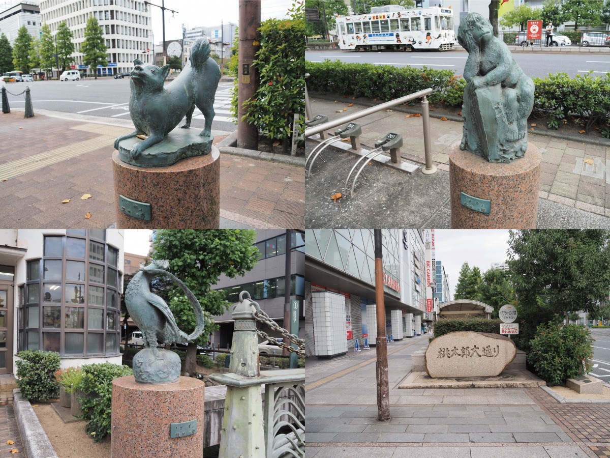 JR岡山駅後楽園口(東口)の桃太郎像とセットで巡ってほしいのが、JR岡山駅後楽園口(東口)から東に延びる「桃太郎大通り」。