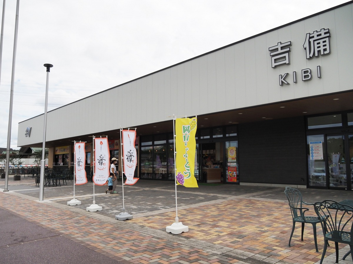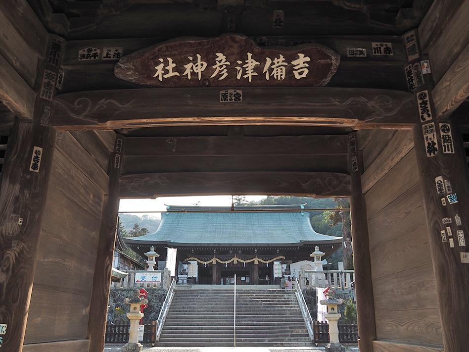 桃太郎がモデルとなった吉備津彦命をお祀りしている吉備津彦神社にも、桃太郎像が。境内ではなく、広い駐車場の端にいますよ。