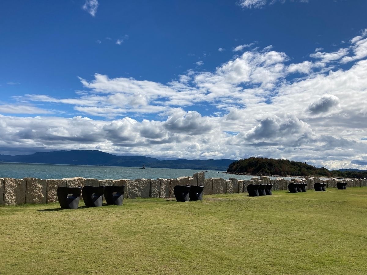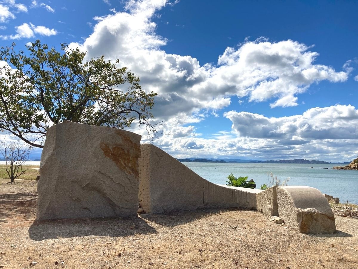 犬島海水浴場のそばにはストーンアートが並んでいます。色んな形をした石の彫刻にはそれぞれテーマがあって、想像を膨らませながら見るのも楽しいですよ。海を背景にストーンアートを好きな角度で撮影してみると、新たな魅力に気付けるかも…?