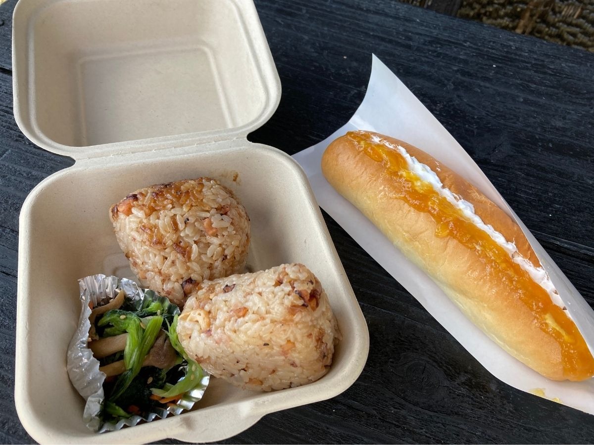 小腹がすいたら犬島チケットセンターに併設されているカフェへ。島と海の空気を感じる外にあるイスで、たこめしのおにぎりと柑橘ジャムとホイップクリームのパンをいただきました。今度の休日はゆったりと時間がながれる犬島で、カメラ片手に出かけてみてください。