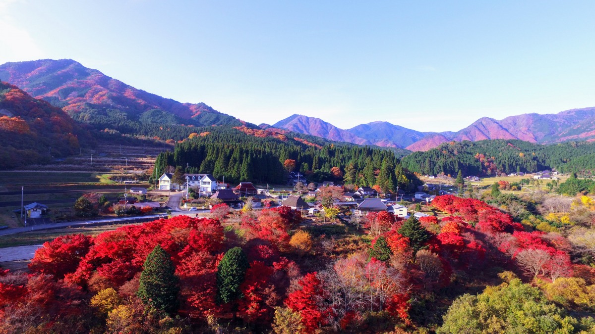 奥津温泉&大釣温泉近くの紅葉スポット「越畑ふるさと村」