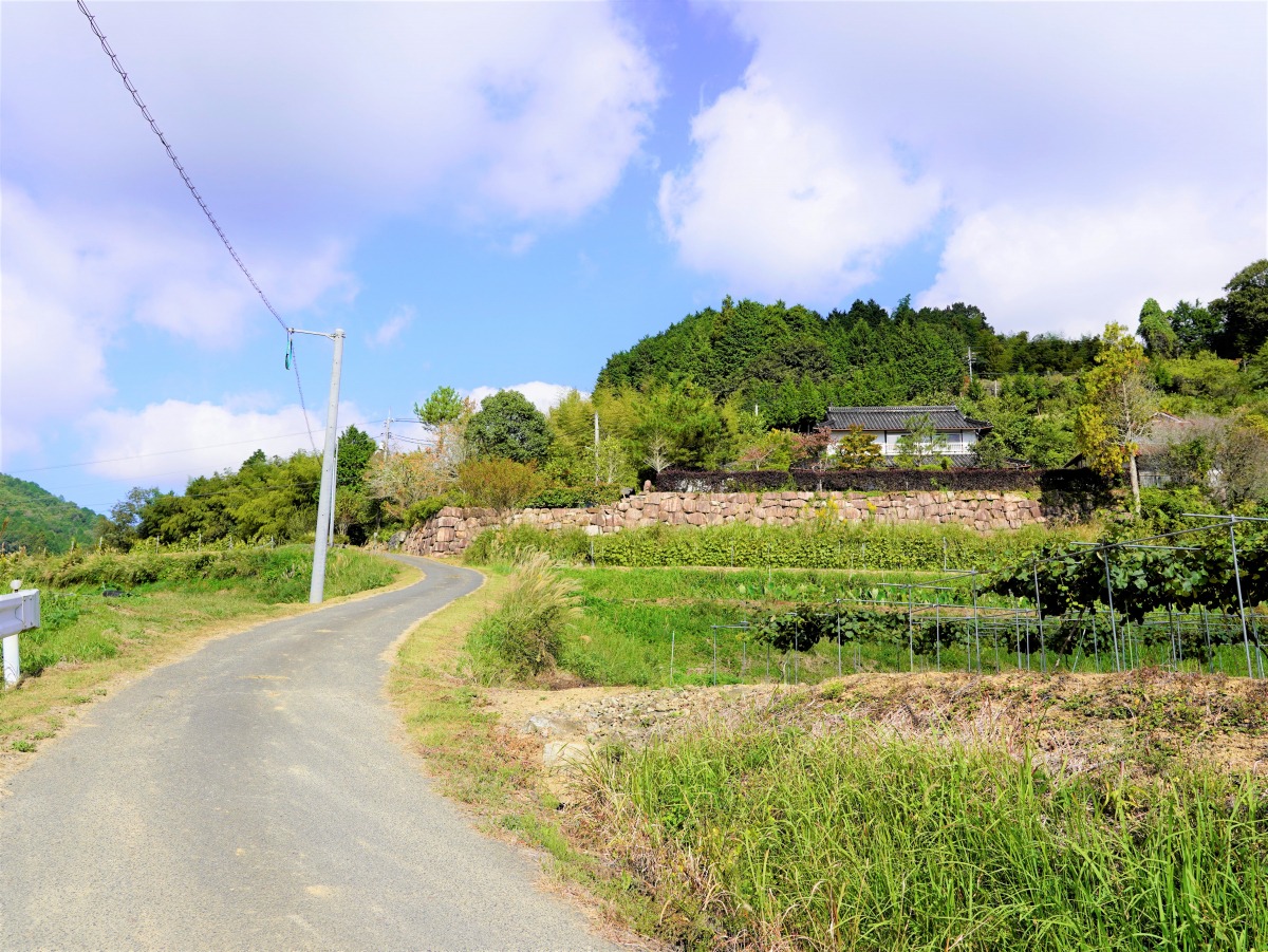 坂の下に車を停めて視線を上げると、目に入るのは立派な石垣。緩やかにカーブする坂道が店へのアプローチです。周囲の自然や心地よく吹く風を感じながらのんびり向かって。