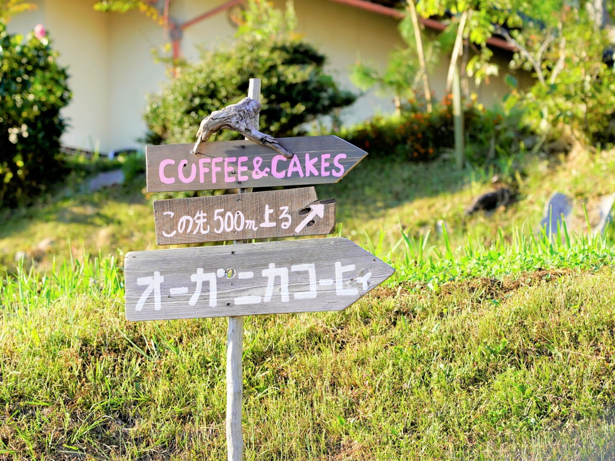 道の分岐点に立てられた小さな看板に導かれ小径を進んだ先にある『オーガニカコーヒィ』は、2021年5月にオープンした一軒。「本当にここに店が!?」という立地に驚かされますが、口コミや実際に飲んだコーヒーの味に惹かれて訪れる人が増えています。
