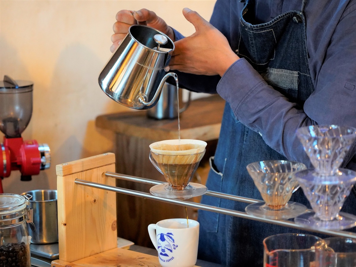 使用しているコーヒー豆はエチオピア、ミャンマー、ラオス、メキシコなどで有機栽培されたものだけ。一杯一杯丁寧に注がれる様子を見ていると、コーヒーに対する真摯な気持ちが伝わってきます。