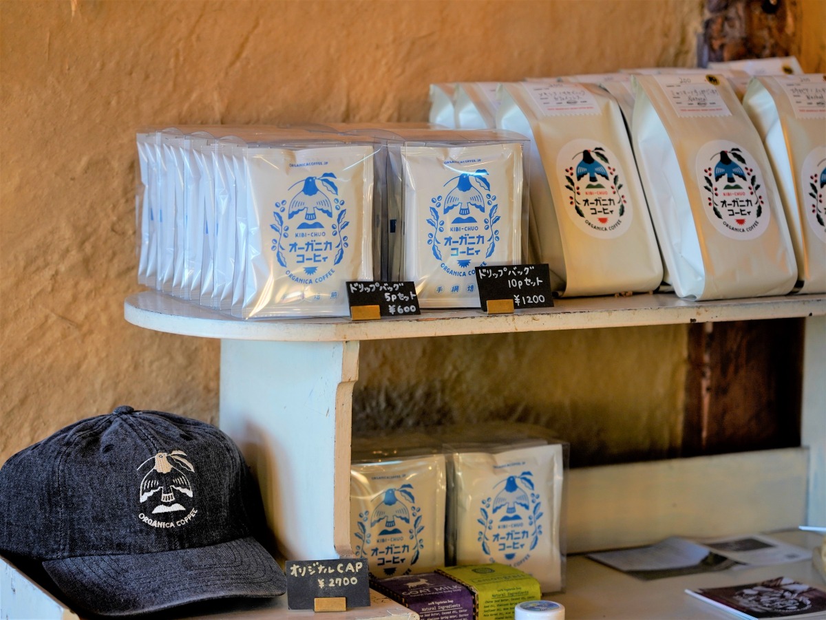 自宅でも味わいたいという人にはコーヒー豆やドリップバッグも。ほかにもお店のロゴが入った帽子やコーヒー豆を保存するキャニスター缶などのオリジナルグッズも販売しています。ちなみにロゴマークのモチーフは吉備中央町が繁殖地として知られるブッポウソウ。“森の宝石”とも呼ばれる青く美しい鳥がデザインされています。