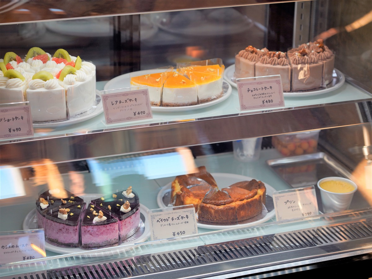 豆が持つ甘みや香りなど本来の味を堪能できる一杯と共に楽しみたいのが、奥さんが作るホームメイドスイーツ。季節の果物がのったフルーツショートやチーズケーキ、シュークリームやプリン、コーヒー屋のティラミスなど、日替わりで10種類程度がショーケースに並びます。