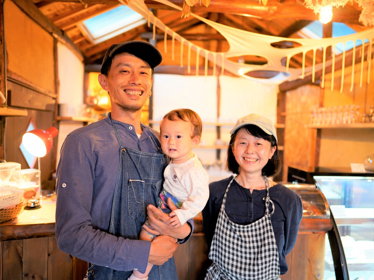店主で焙煎士の笹田亮(りょう)さんとケーキ担当の奥様の愛美(あみ)さん。関西出身の笹田さんは岡山県高梁市での暮らしを経て昨年吉備中央町に移住、今年念願のカフェをオープン。決め手になったのは、山々を見渡せ、朝には雲海が広がり、ブッポウソウが毎年飛来する、そんな豊かな自然環境でした。「この場所からの町の絶景を見てもらいたい」と亮さん。山の上のカフェでは、ゆったりと過ごすひとときに美味しいコーヒーとケーキ、美しい自然が加わって、極上の癒し時間を約束してくれます。