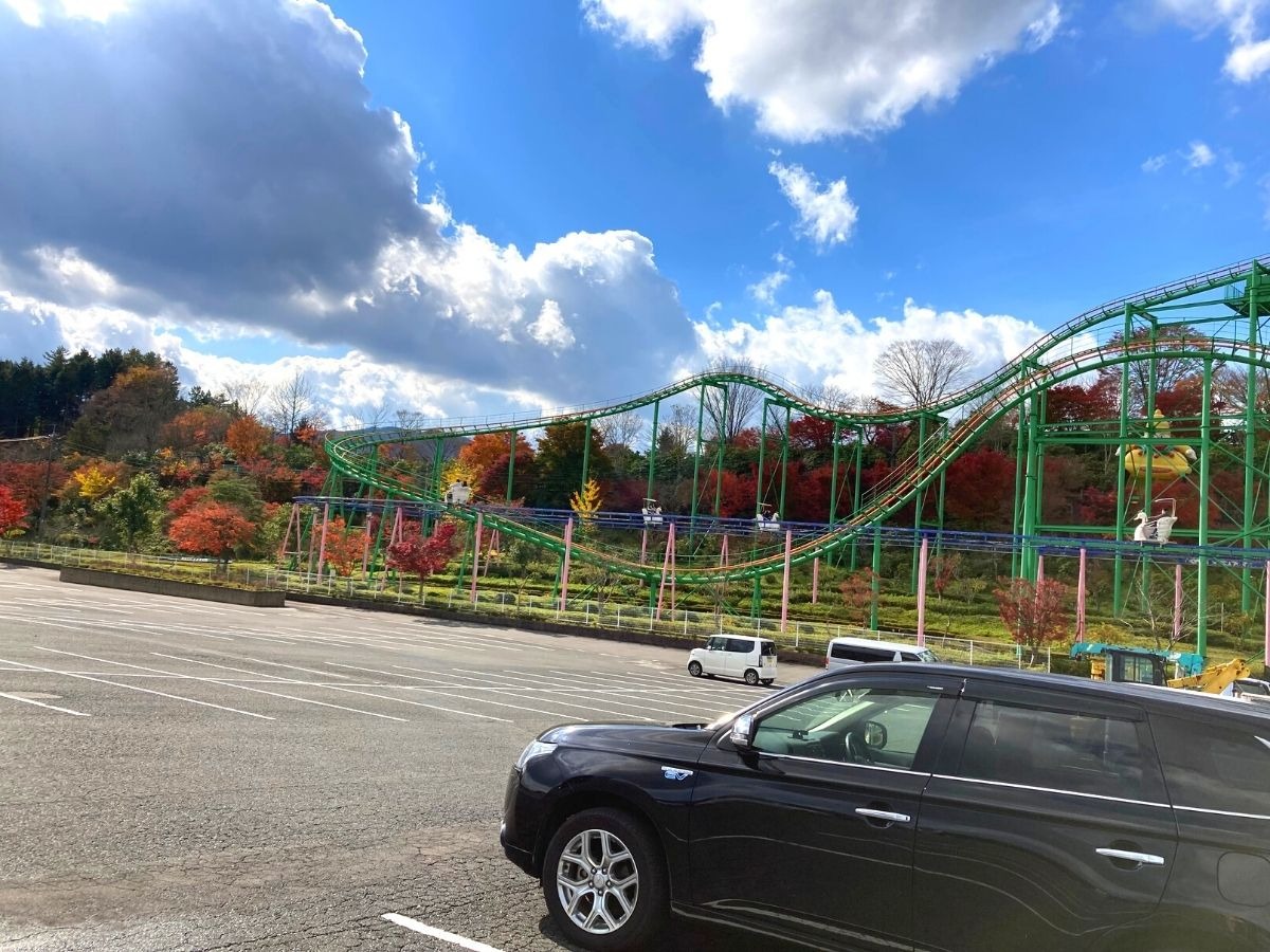 蒜山大山スカイラインのすぐそばにある「ヒルゼン高原センター・ジョイフルパーク」も秋色に染まっていました。涼しくなって過ごしやすい秋、ドライブの目的地にアミューズメントパークという選択肢も。ヒルゼン高原センター・ジョイフルパークで、秋の紅葉をバックに季節を感じながら、家族や友人・恋人とステキな時間を過ごしてください。