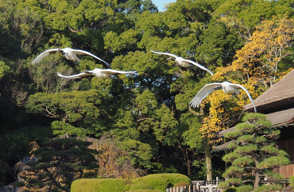 タンチョウが鑑賞できる4つのスポット、岡山後楽園、岡山県自然保護センター、きびじつるの里、蒜山タンチョウの里を紹介します。