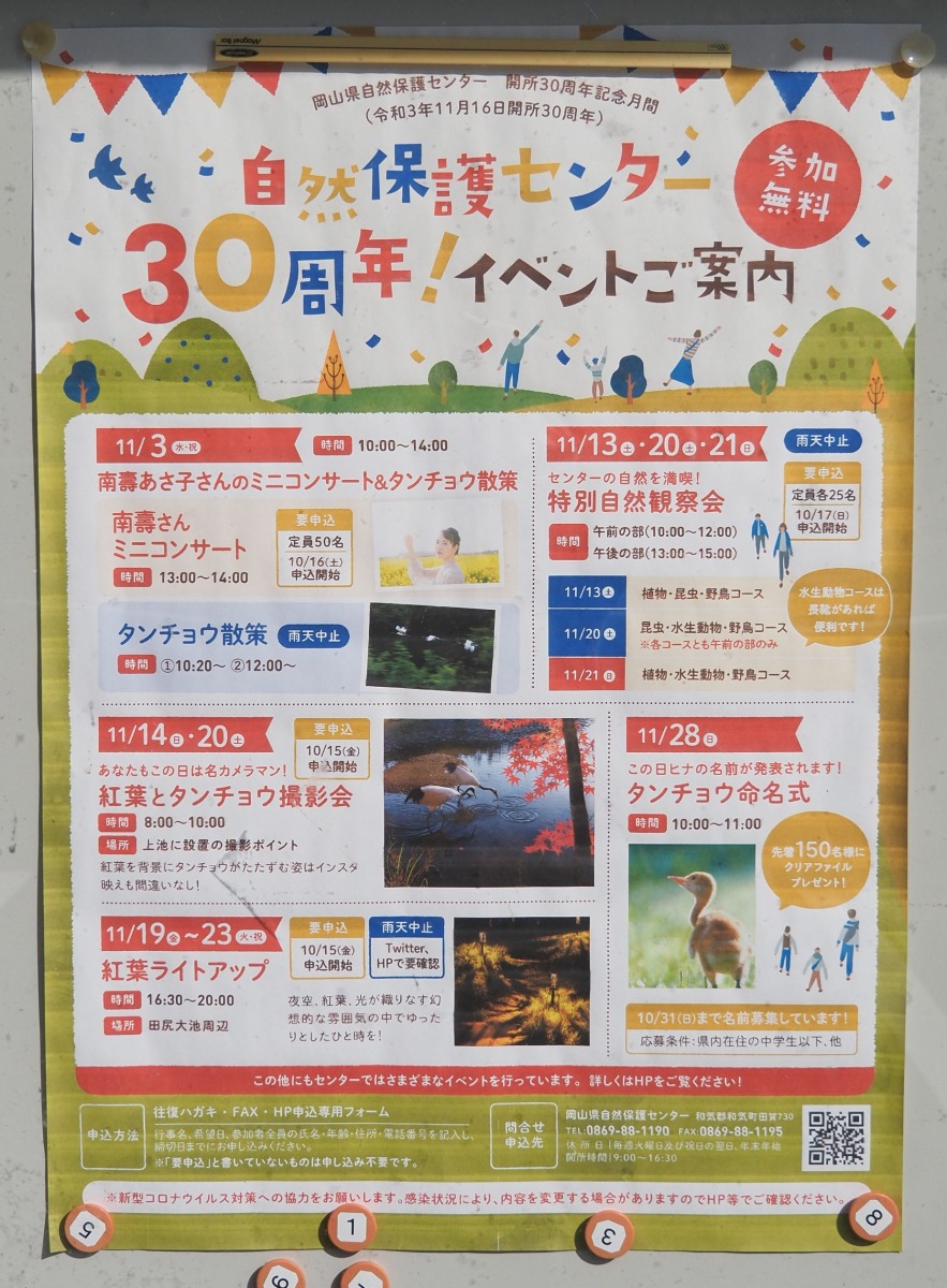 以降、保護・増殖の取り組みが続き、今では岡山県自然保護センターを中心に58羽(2021年9月末現在)が飼育され、全国の中でもタンチョウの飼育が盛んな県となっています。