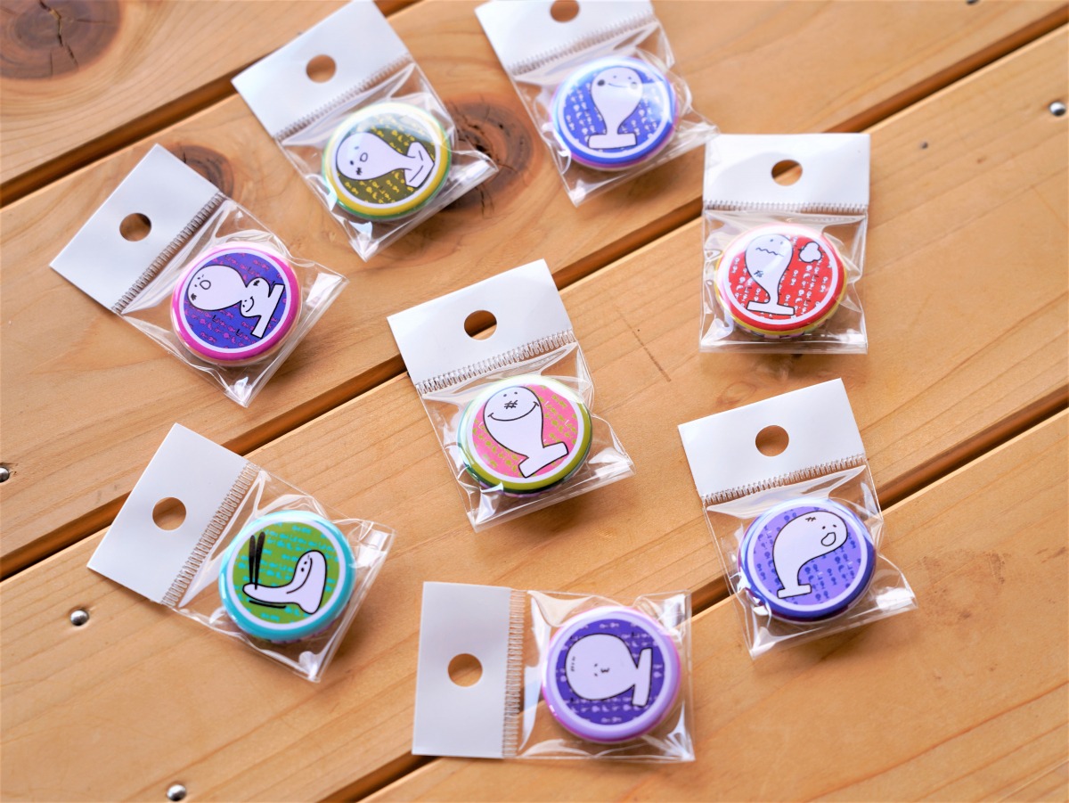 MOCHI-HACHI兄弟8人それぞれの缶バッジ。いろんなカラーがあって装いのワンポイントになること間違いなし。全員コンプリートすれば、服装や持ち物に合わせてコーディネートが楽しめそう。