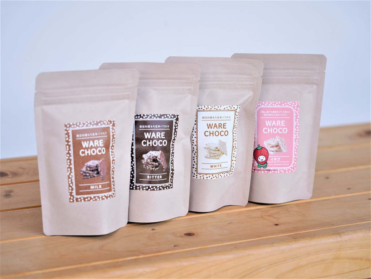 カリっと芳ばしくローストしたもち米が入ったクランチチョコ。エネルギー源を手軽に補給できるもち米を使ったチョコレート菓子は、スポーツやサイクリング、登山時の栄養補給にもぴったり。