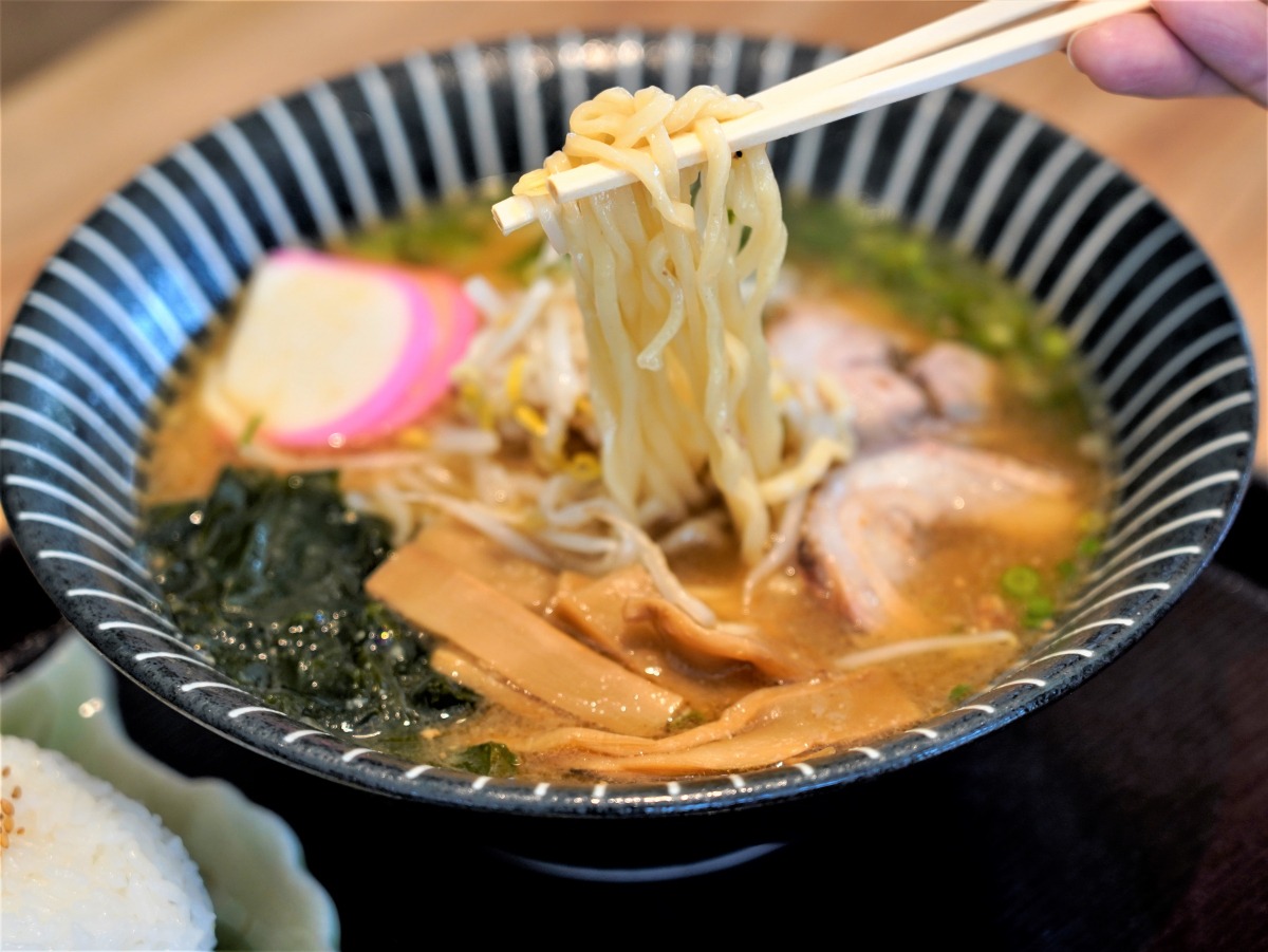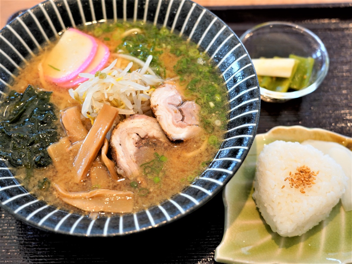 イチオシは自社製米粉麺を使ったメニュー。人気の「新庄ししメン」はちぢれ麺にスープがよく絡むあっさりながらコクのある一杯で、村内で獲れた猪肉を使って作る燻製チャーシューがトッピングされています。ほかにも米粉麺のうどんやパスタ、ごはんの代わりに丸餅が入った牛丼、おにぎり、ぜんざい、ご当地グルメのひめっ子雑煮も食べられます。