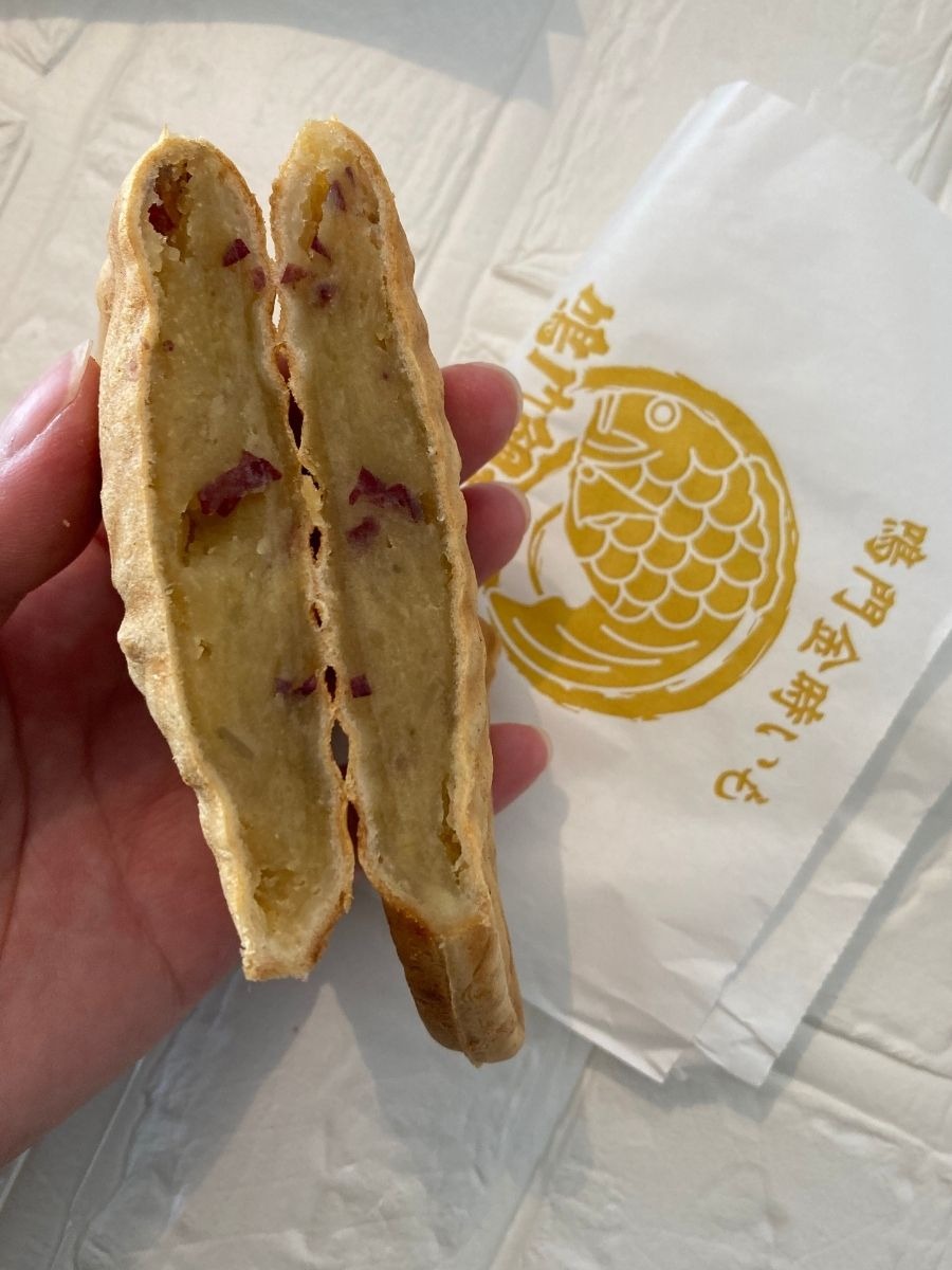 鳴門鯛焼本舗にはあずきの他に、濃厚なプレミアムカスタードと最高峰の鳴門金時いもがあります。せっかくなので鳴門金時いもを注文してみました。薄皮の生地にたっぷりの餡が包まれており、鳴門金時いもの深みある甘味をしっかりと感じられます。コーヒーにも合いそうな大人の味わいです。あずきは1つ220円、カスタードは1つ260円、鳴門金時いもは240円でした。他にもアイスもなかやわらび餅もあり、たい焼きを筆頭に幅広い世代から人気を集める和スイーツ店です。