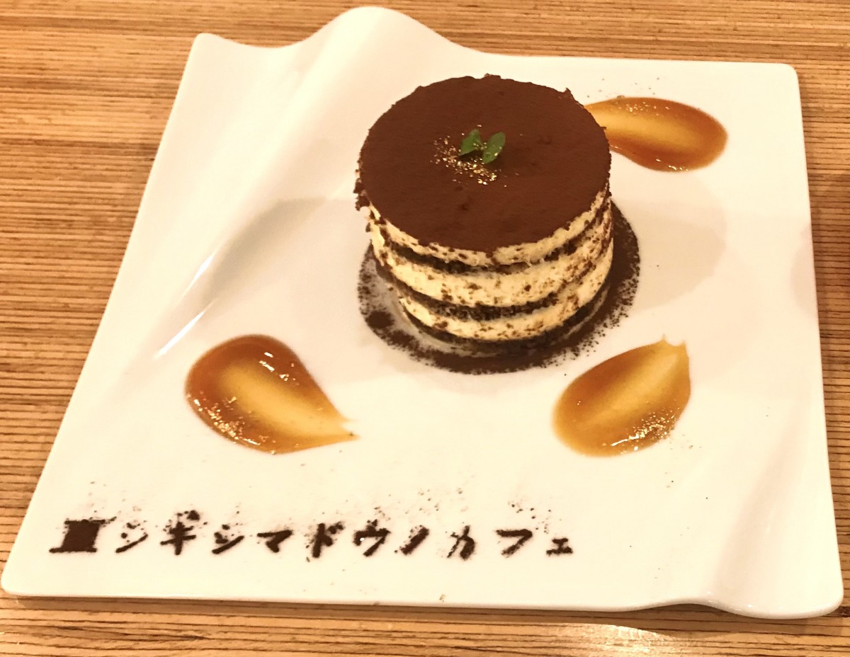 ティラミスも、モンブランと同じくらい迫力ある一品です。真っ白なお皿にカカオパウダーで美しく仕上げられ、織りなす層は芸術品のよう。優しい甘さとなめらかな口どけで、大きいのにスルスルと食べられます。ポイントはかくし味。中には粒あんが潜んでいて、コクのあるマスカルポーネチーズとビターなコーヒー風味に、あずきの甘みが合います。コーヒーといただく老舗和菓子店の洋菓子は、和の要素も効いて美味でした。