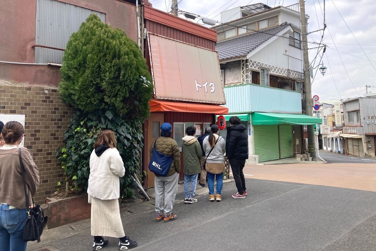 通町商店街をしばらく歩いて抜けた先、ひっそりと佇む小さなエリア銀座商店街へ。寂れた街の中で唯一、長蛇の列をなして活気を放っていたのが昔ながらのたこ焼き屋「トイタ」さん。昔ながらの店構えでありながら現在まで活気のある営業をされている様子を見ていると、まるでタイムスリップしたかのような感覚に陥ります。