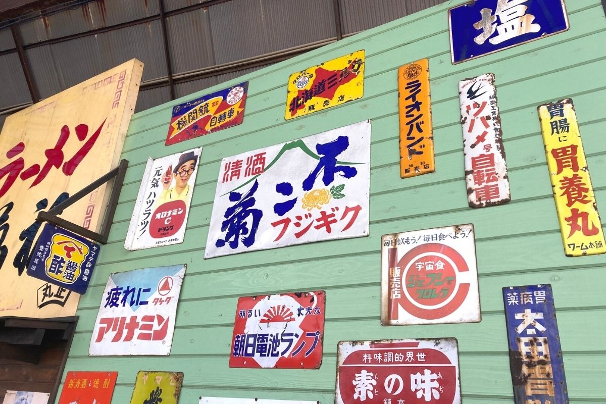 昔懐かしの看板やポスターが一挙に並んだ壁は見ごたえたっぷり!世代ではなくても楽しめるレトロな壁は、訪れた人の多くが写真におさめたくなる通町商店街の観光名物にもなっています。