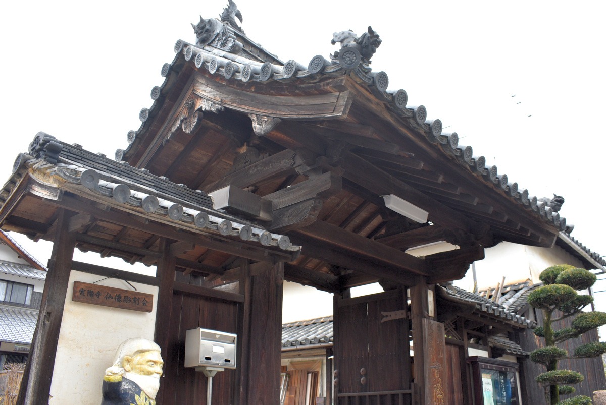 軒を受ける、リズミカルな舟肘木。欄間窓の格子デザインに、卍の鬼瓦など。1828年当時の優れた意匠が見られる、禅宗本堂建築(有形文化財)ですよ!中庭の七福神さまからは、笑みを授けられたり。門前では、蓮の花を手にした仏さまに出迎えてもらえたりと。小さな境内ですが、清々しい気持ちになりますよ。参道の3つ並びのお堂にも、しっかりお参りいたしましょう。