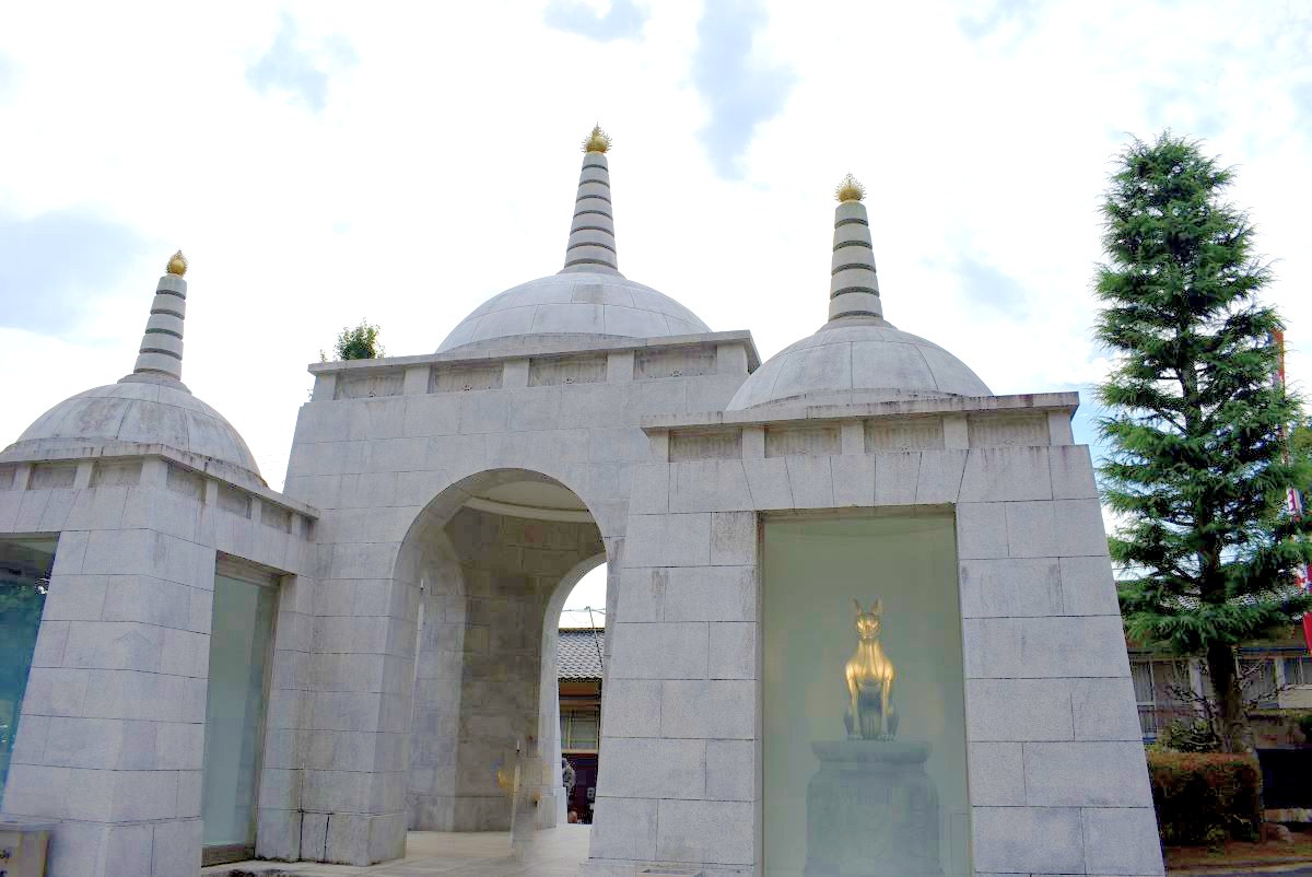 邪気をよせつけない!金色の金剛力士像を祀る、仁王門(有形文化財)です。連なるドーム。アーチ型の通路。そして花崗岩貼りという独自の景観。足をふみいれる前から、ただならぬ気配を感じさせる!?神仏習合のお寺です。広大な境内で、檜皮葺きの霊応殿から、菊水などが彫られた御水舎など。厳かさを感じる有形文化財建築物を、じっくり味わってみてくださいね。