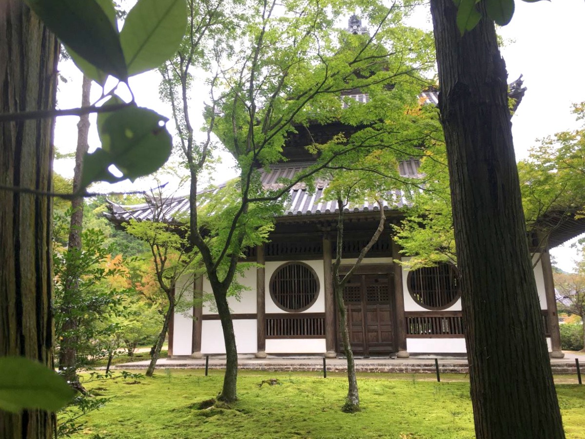 伽藍のセンターポジション!仏殿(有形文化財)の裏に、神秘的な苔色の世界がひろがっています。宝福寺は紅葉のみならず、苔庭の名所でもあるんですよ。白漆喰の経蔵。総延長65mもの方丈土塀などなど。なんと有形文化財登録の建築物を、20以上も有しているんですって。四季をきりとりながら、美しい庭景色にもひたれる総社の名寺です。