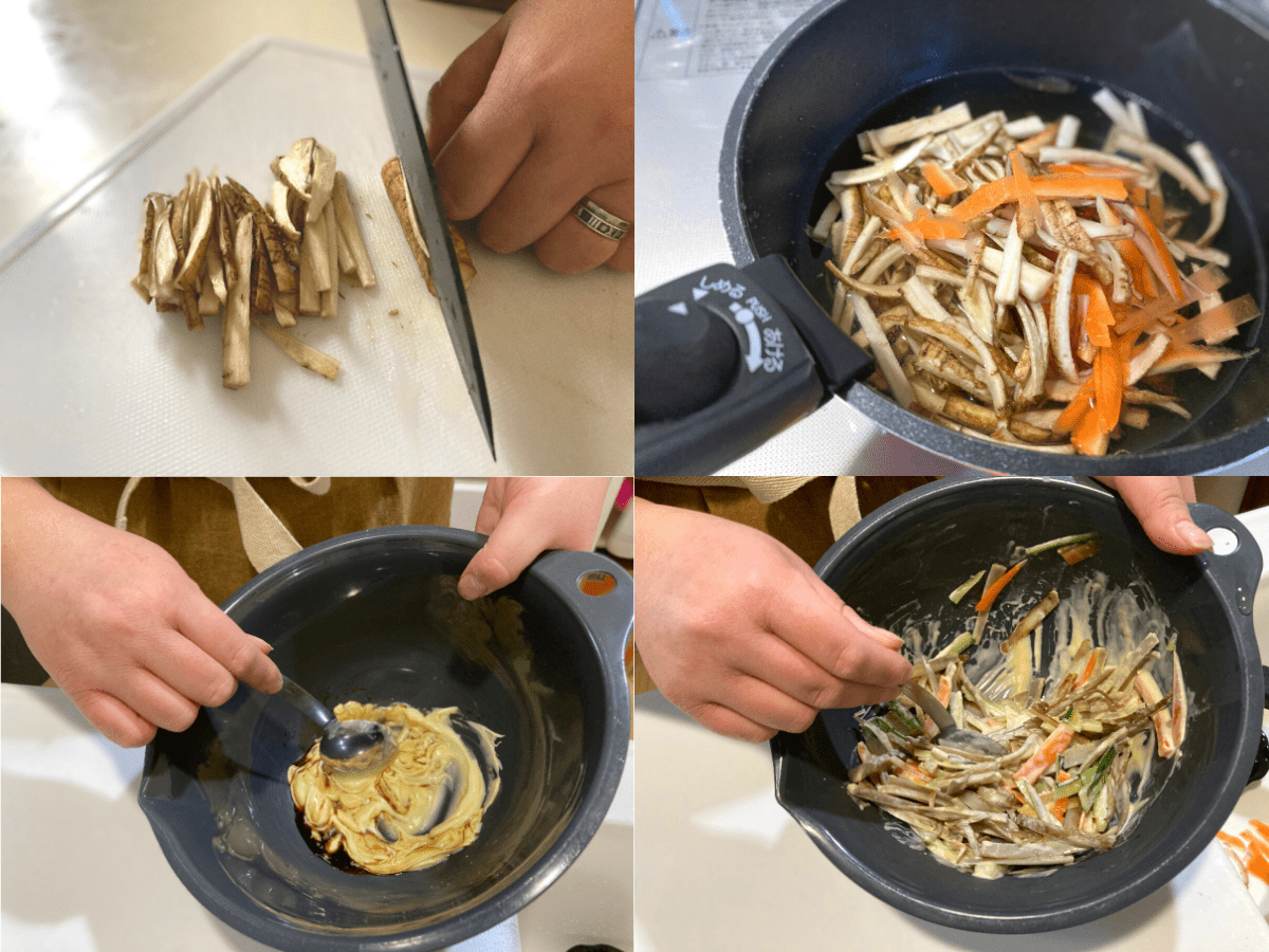 ※連島ごぼうの皮はそぎ落とさなくてもOK!柔らかいから太めの千切りがおすすめです。