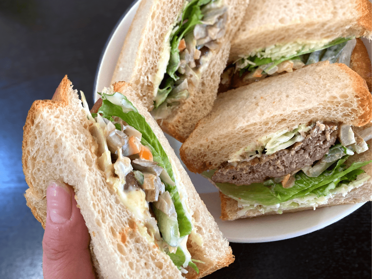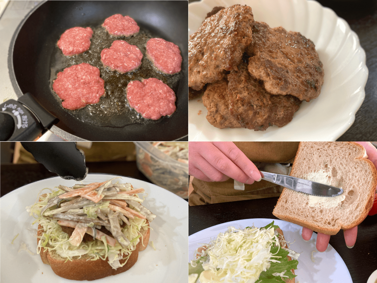 6.もう1枚の食パンにもマーガリンをぬって、上からかぶせたら完成です。