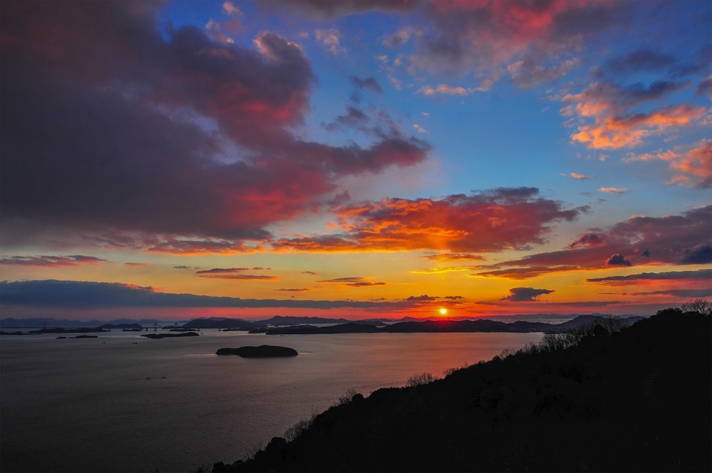 知る人ぞ知る瀬戸内海の夕景鑑賞スポットで、三百山山頂付近からは瀬戸内の島々に沈む美しい夕日や瀬戸大橋のパノラマが楽しめます。