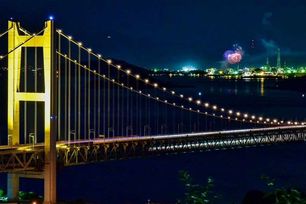 夏には、瀬戸大橋の対岸にある坂出市や丸亀市の花火を見ることができます。双眼鏡があると、もっと楽しむことができます。