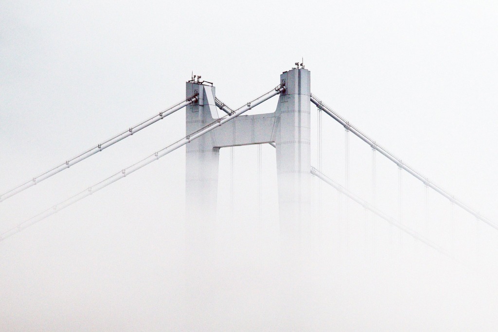 霧に包まれた瀬戸大橋の風景です。 写真提供:倉敷科学センター 三島和久学芸員