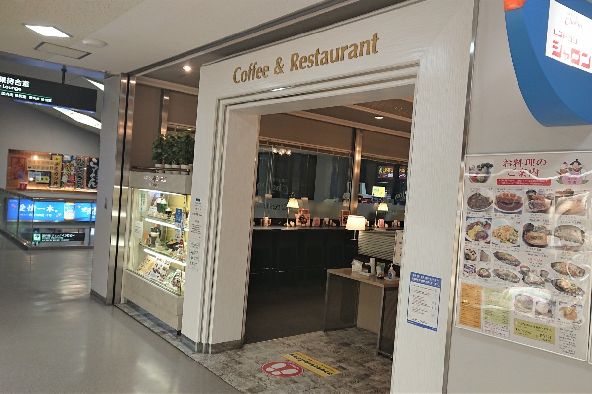 ターミナルビル2階の国内線搭乗口目の前にある『レストラン シャロン』。しっかり食べたい時の定食や、ちょっと一杯のお供のおつまみ、カフェメニューが充実。テクアウトができるメニューもあります。