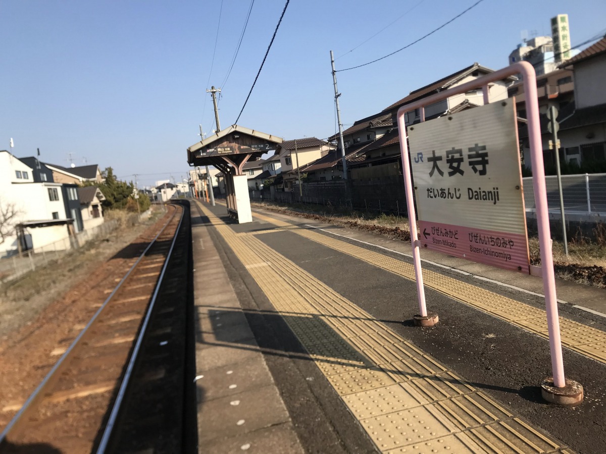 【電車】岡山駅から桃太郎線で大安寺駅下車、徒歩約4分(のどかな風景を楽しみながら散歩ができます♪ )