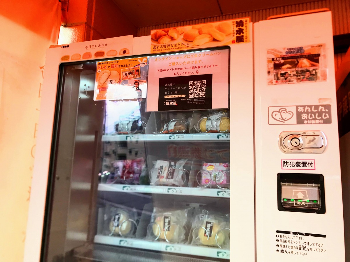通販や出張販売などでも全国に知られる生クリームパンが、24時間いつでも買える自販機が岡山市の本社工場にあるんです。