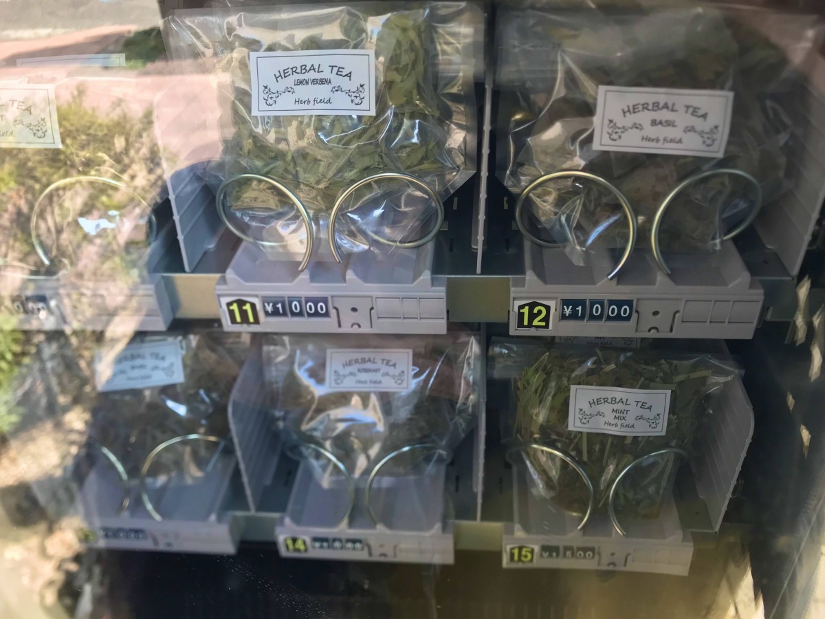 品揃えは、バジルやミント、ローズマリーなど馴染みあるものから、マルベリー(桑の葉)、タラゴン、レモンヴァーベナなどなかなか手に入らないものまで様々。自販機の横にはおすすめハーブの詳しい説明が書かれていて勉強になります。