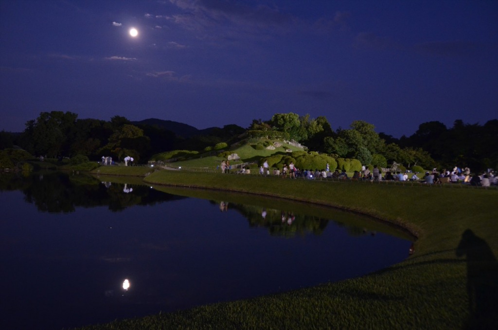毎年、十五夜(旧暦8月15日)に開催されている人気イベントです。普段は立ち入りができない芝生を開放し、思い思いにお月見が楽しめるほか、琴の演奏やお茶会、限定の月見弁当の販売もあります。