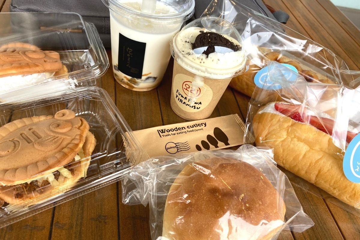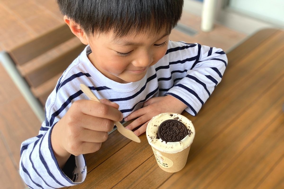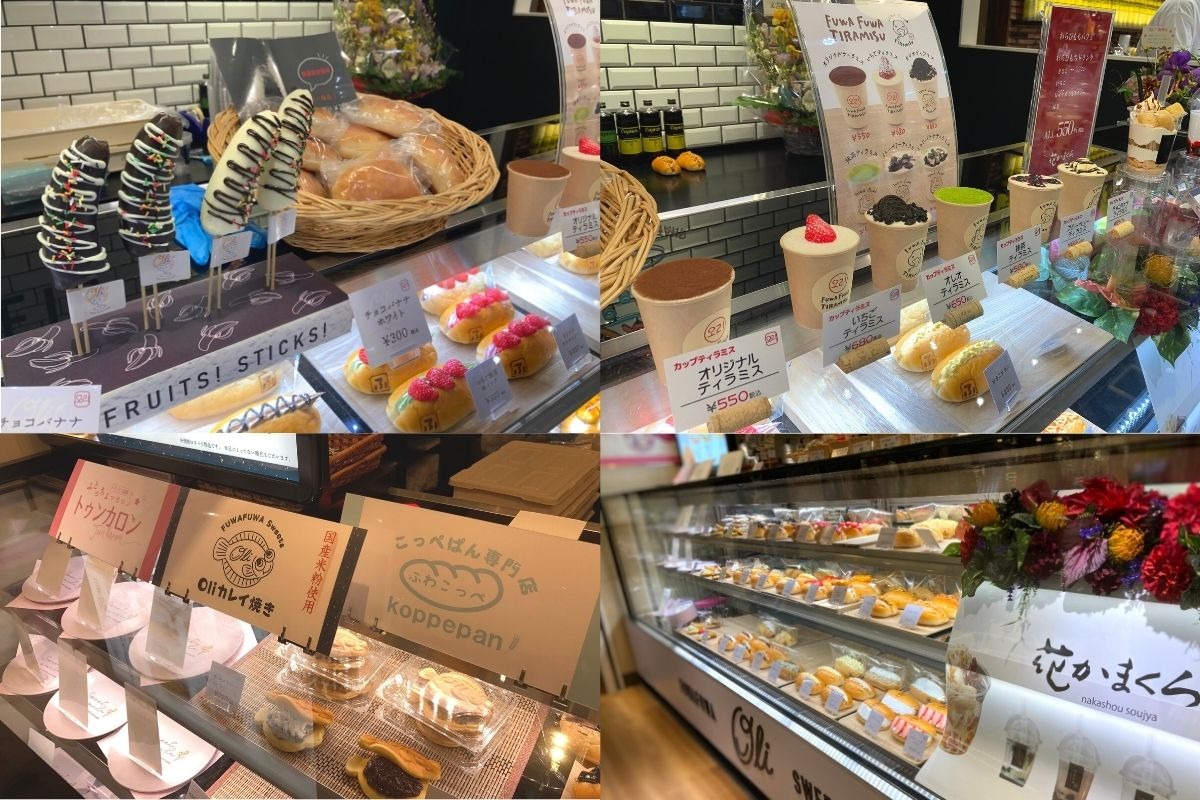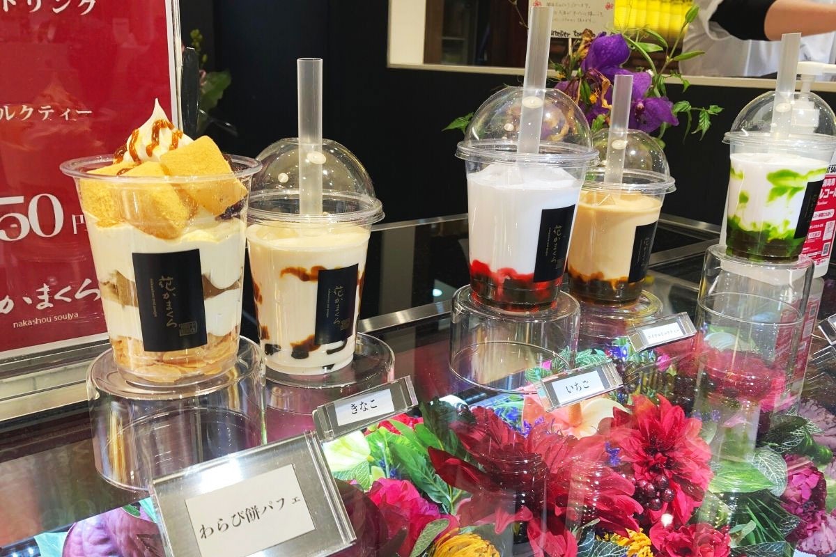 この店舗では、「FRUITS STAND Oli(フルーツスタンドオリ)」として、映えスイーツとして若者を中心に人気を集める2店舗にくわえ、老舗和菓子店の「ねぼけ堂」と「花かまくら」のメニューも味わえるお店です。甘いものに目がない筆者親子で、今人気の映えスイーツを堪能してきました!