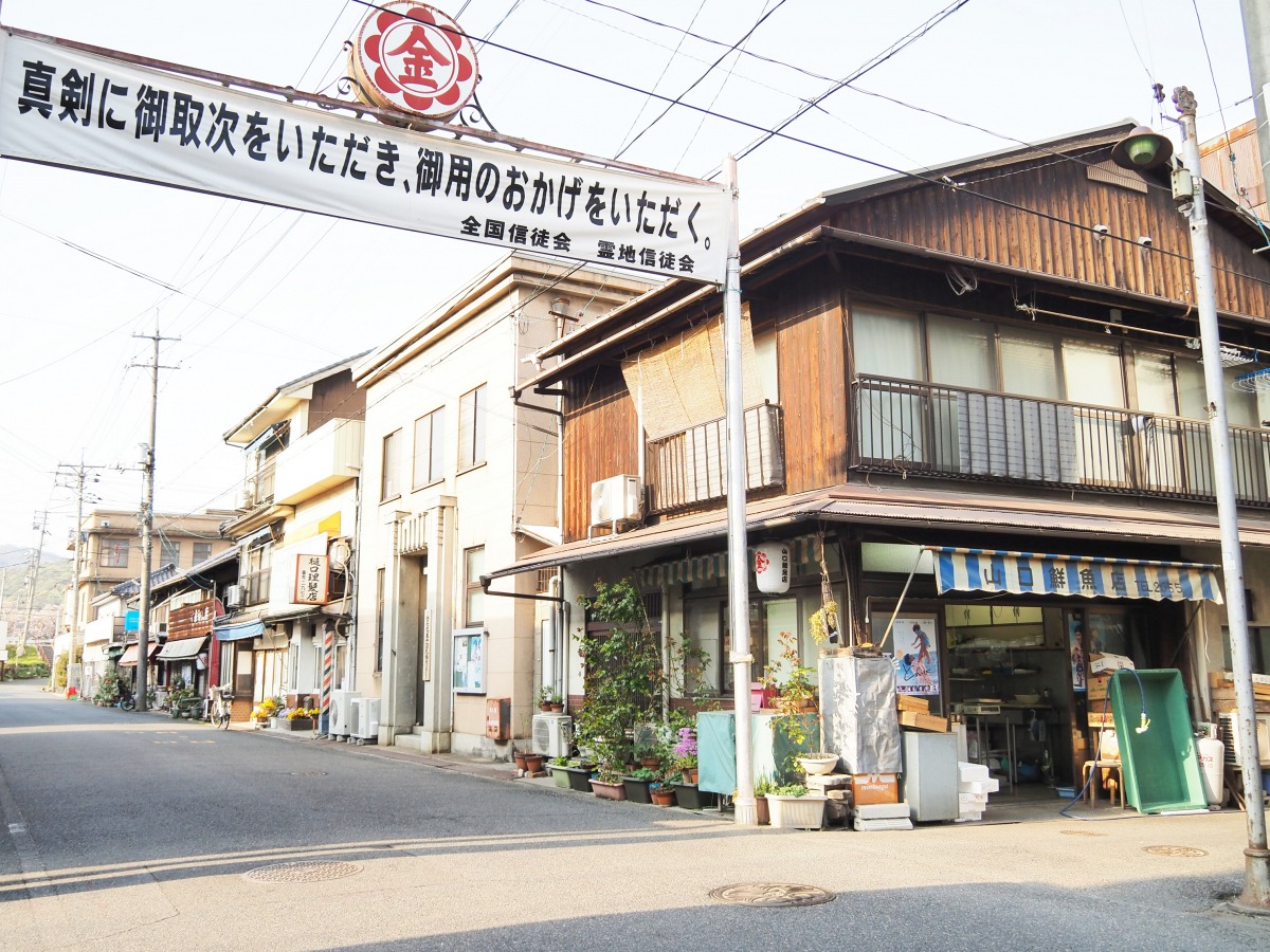 ロケ地となったのは岡山県浅口市金光町大谷地区。金光教本部の門前町で、古き良き街並みが今も残っています。こちらの写真はふだんの門前町の様子です。