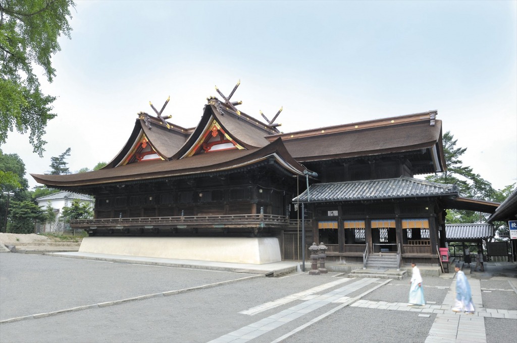 美作国一宮。津山市一宮にあります。主祭神は鏡作神(かがみつくりのかみ)。本殿は単層入母屋造妻入です。「中山造」とも呼ばれ、美作の多くの神社建築の模範となりました。