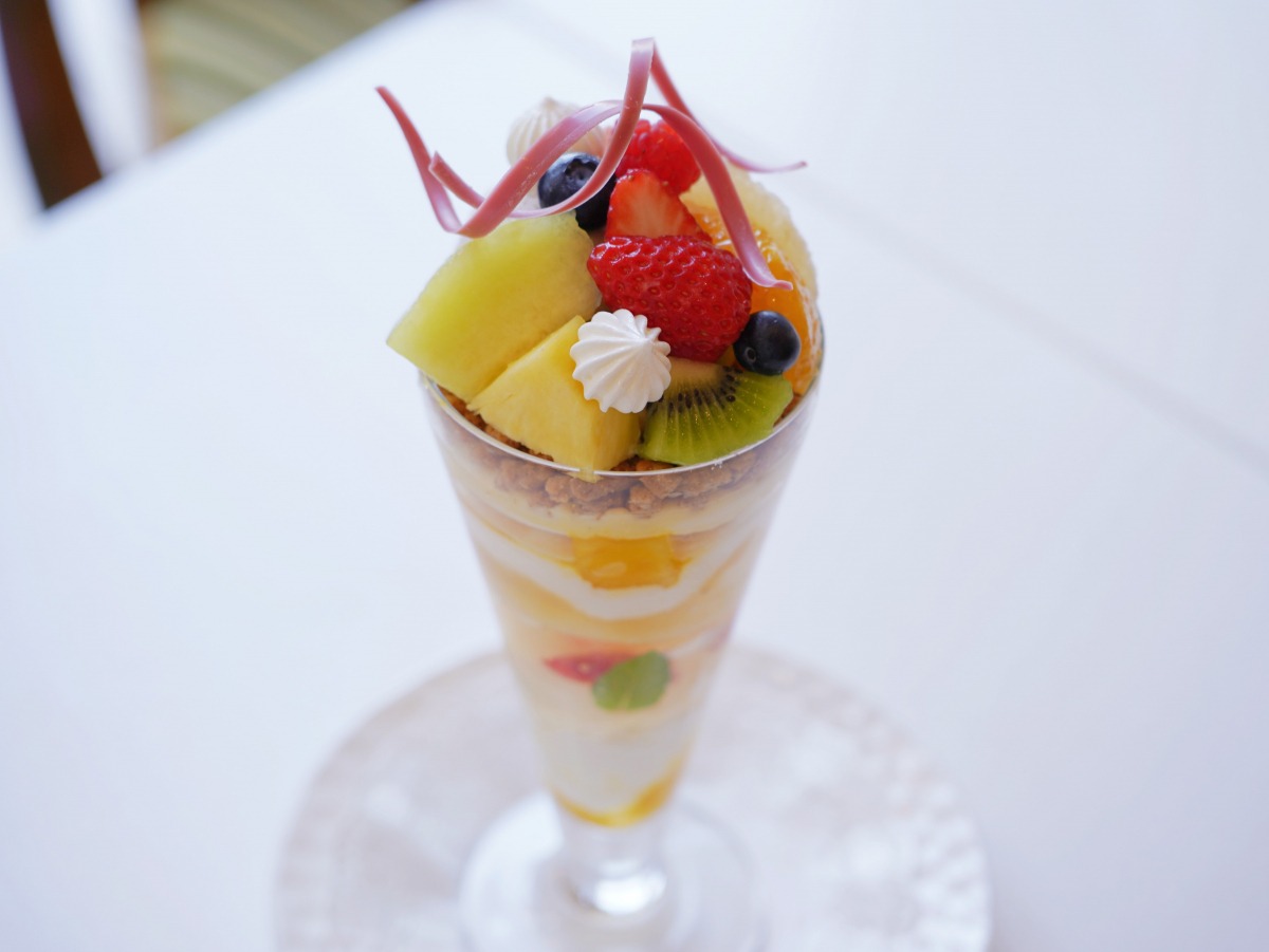 今が旬のフルーツをたくさん味わってもらうことや、飽きずに最後まで食べられるように何層にも重ねていること、最後はさっぱりと終われるように1番下はさっぱりとした味わいになるものを入れているなど、シェフのおもてなしの心が詰まった一品となっています。